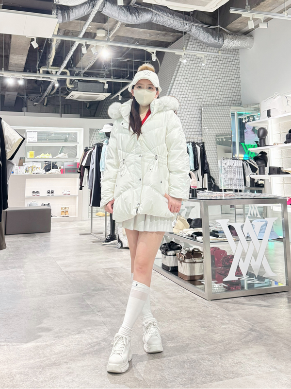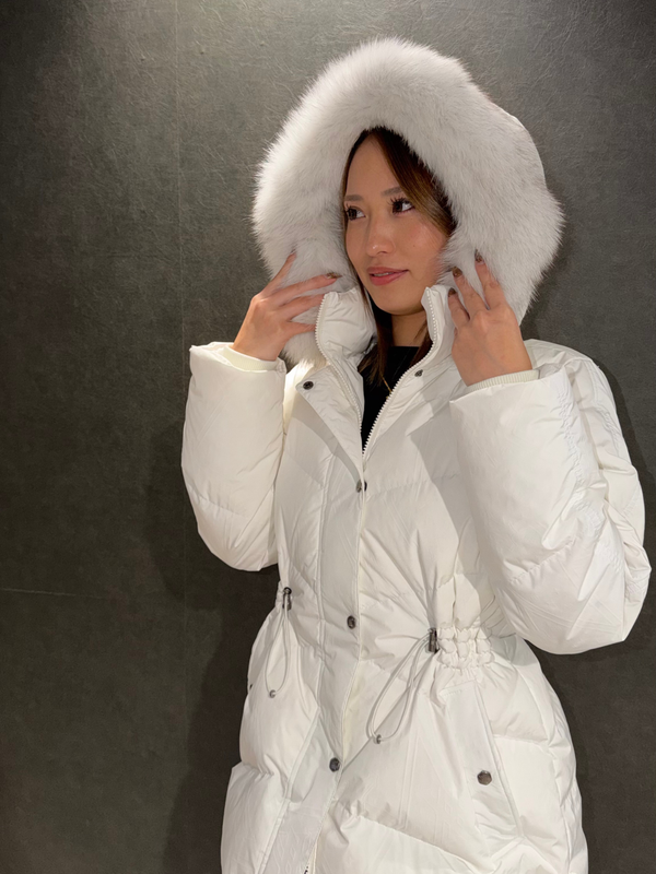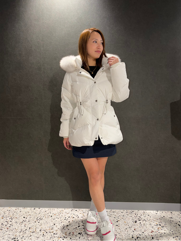 ウエスト部分にはドローストリングを配し、シルエット調整が可能。防寒性はもちろん、すっきりとした女性らしいラインで着用できる一着です。